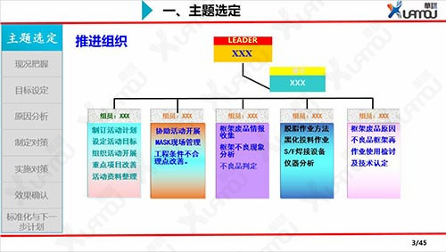 組成部門級別、班組級別的品質(zhì)圈,選定主題,協(xié)調(diào)各方資源對問題進(jìn)行小組改善。
